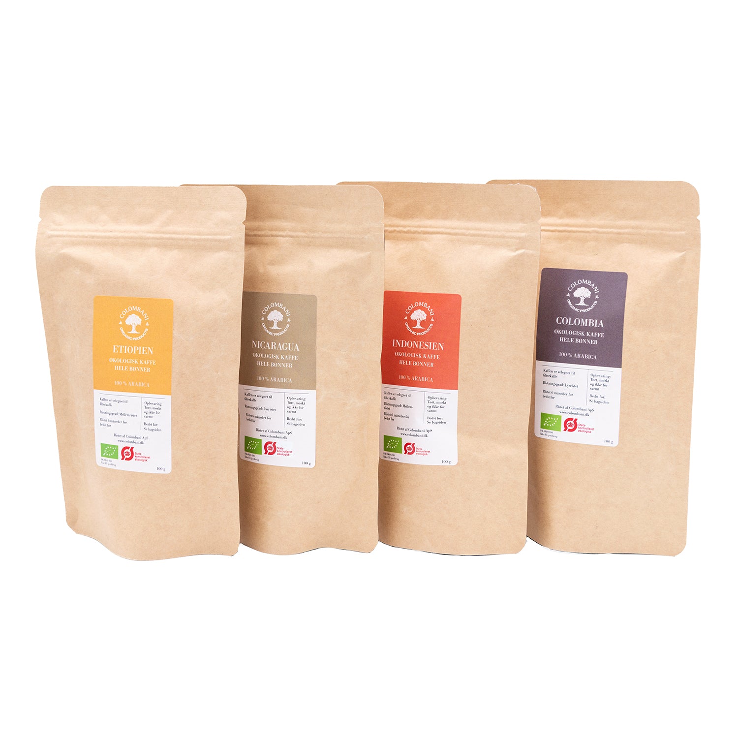Hele kaffebønner, 4 x 100 gram, økologisk (mellem og lys risteprofil)